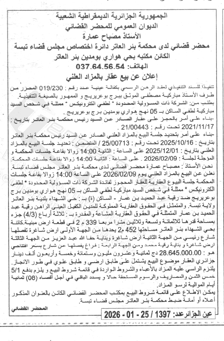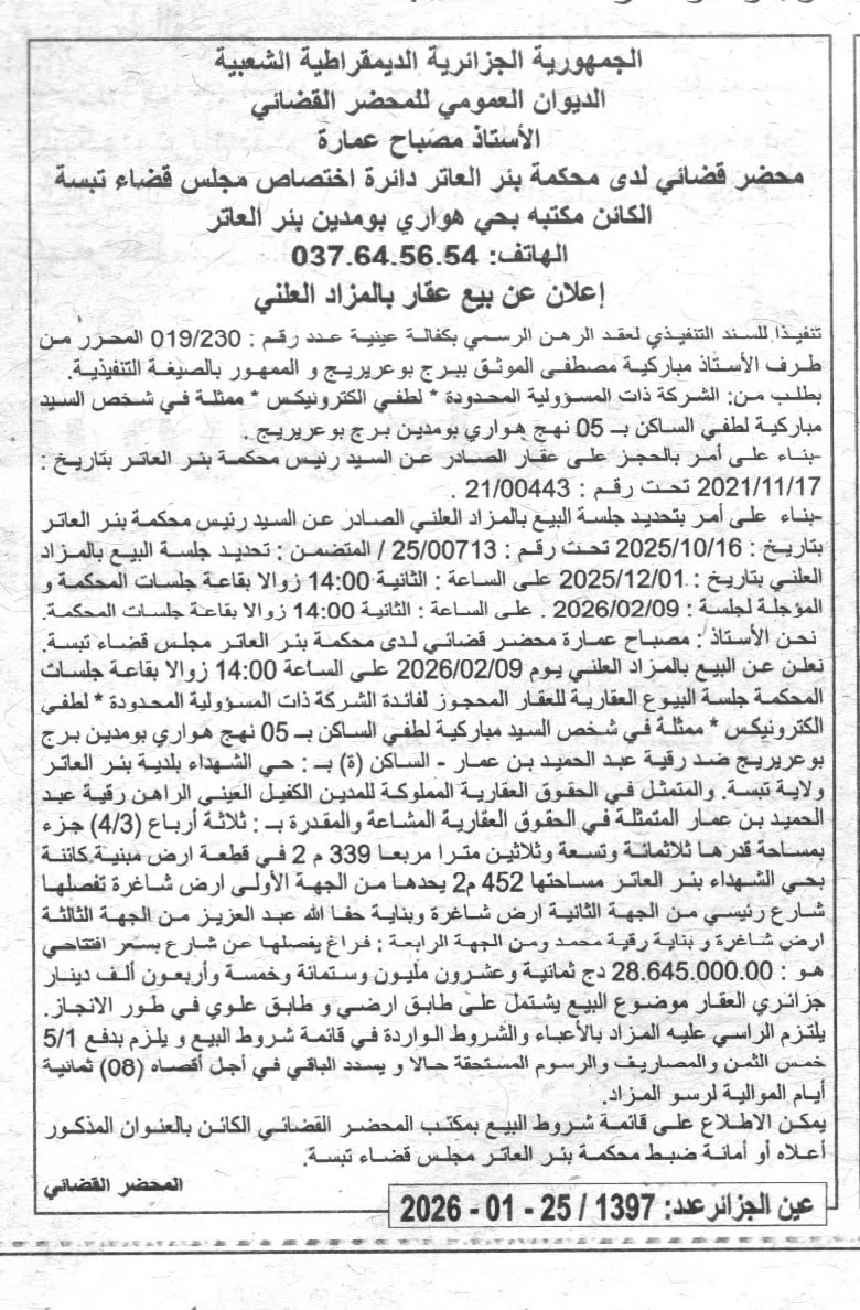 | Paru dans le journal : عين الجزائر | |