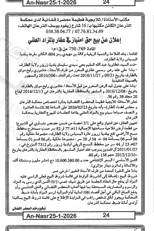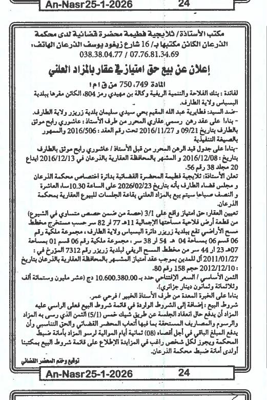 Il sera procédé à la vente au plus offrant et dernier enchérisseur le :
