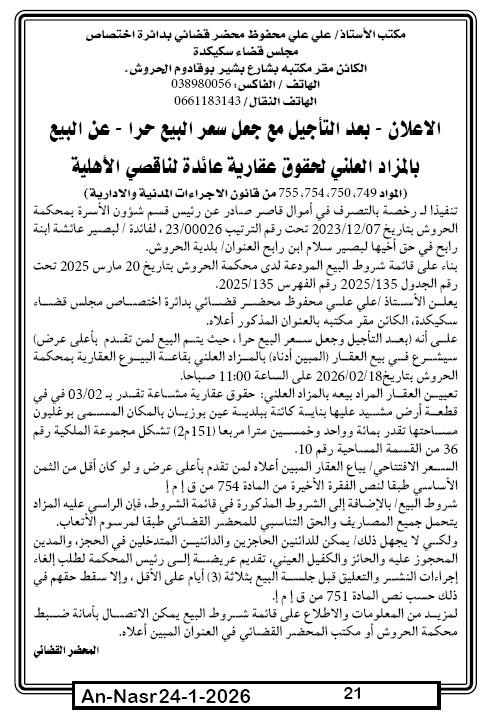 | Paru dans le journal : النصر | |