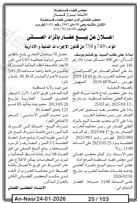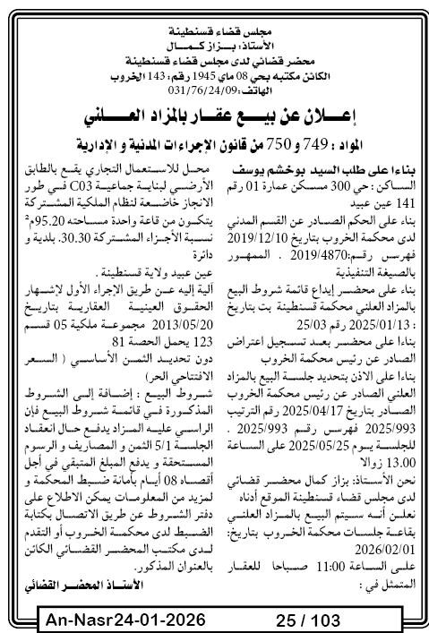 | Paru dans le journal : النصر | |