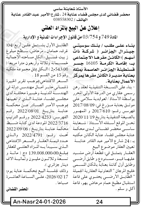 Il sera procédé à la vente au plus offrant et dernier enchérisseur le :