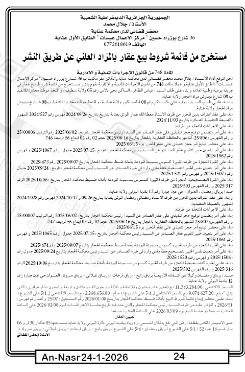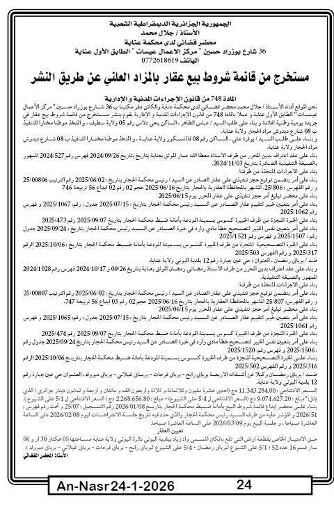 Il sera procédé à la vente au plus offrant et dernier enchérisseur le :