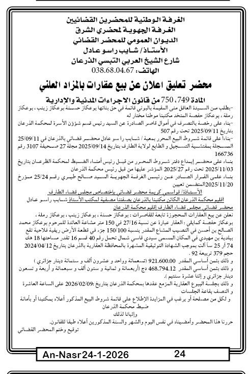 | Paru dans le journal : النصر | |
