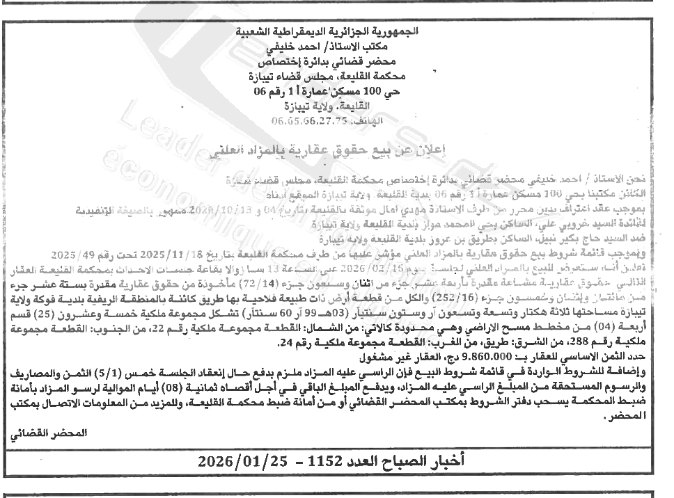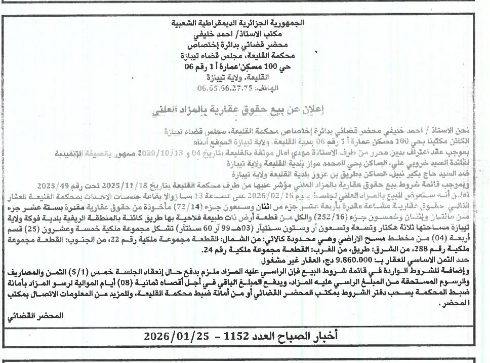 | Paru dans le journal : اخبار الصباح | |