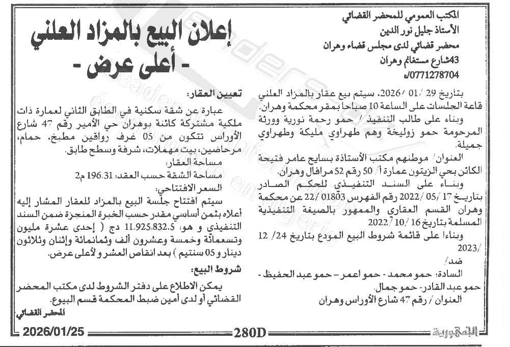 Il sera procédé à la vente au plus offrant et dernier enchérisseur le :