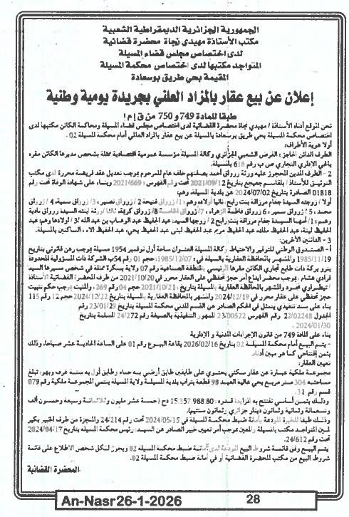 • Wilaya :MSila