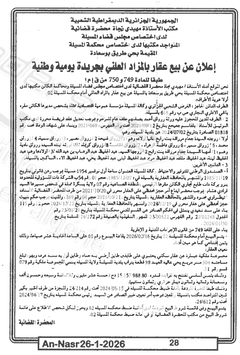 Il sera procédé à la vente au plus offrant et dernier enchérisseur le : 02/02/2026';