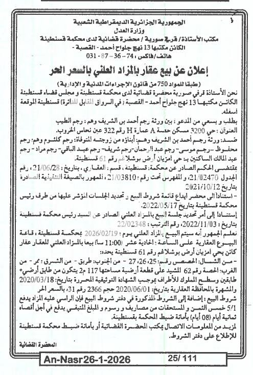 | Paru dans le journal : النصر | |