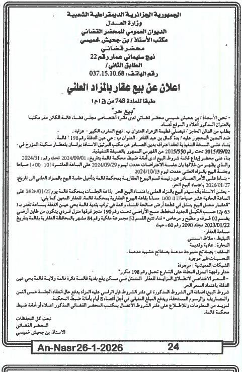 Il sera procédé à la vente au plus offrant et dernier enchérisseur le :