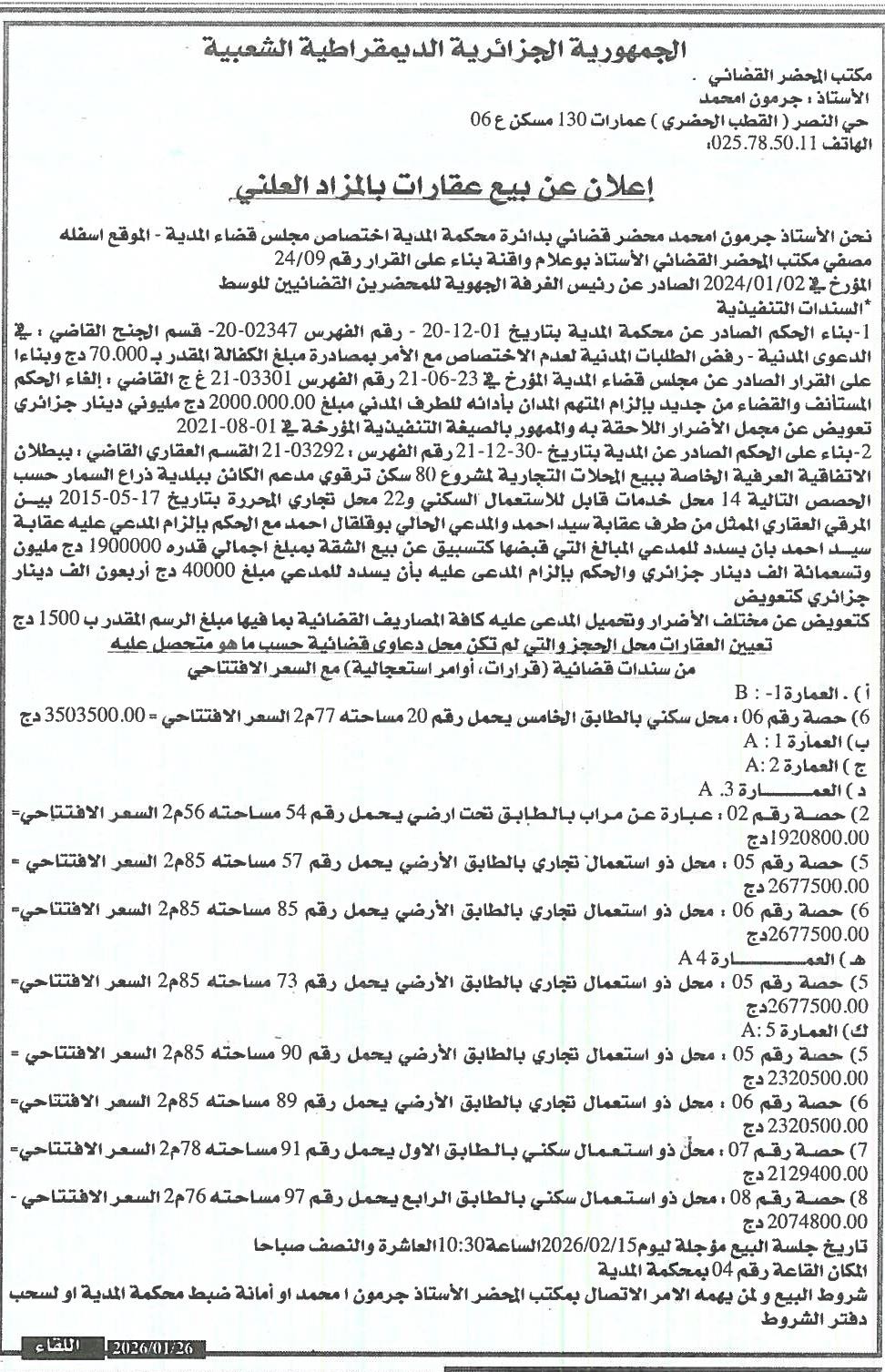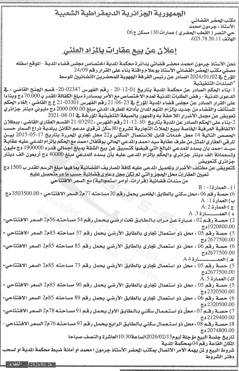 Il sera procédé à la vente au plus offrant et dernier enchérisseur le :