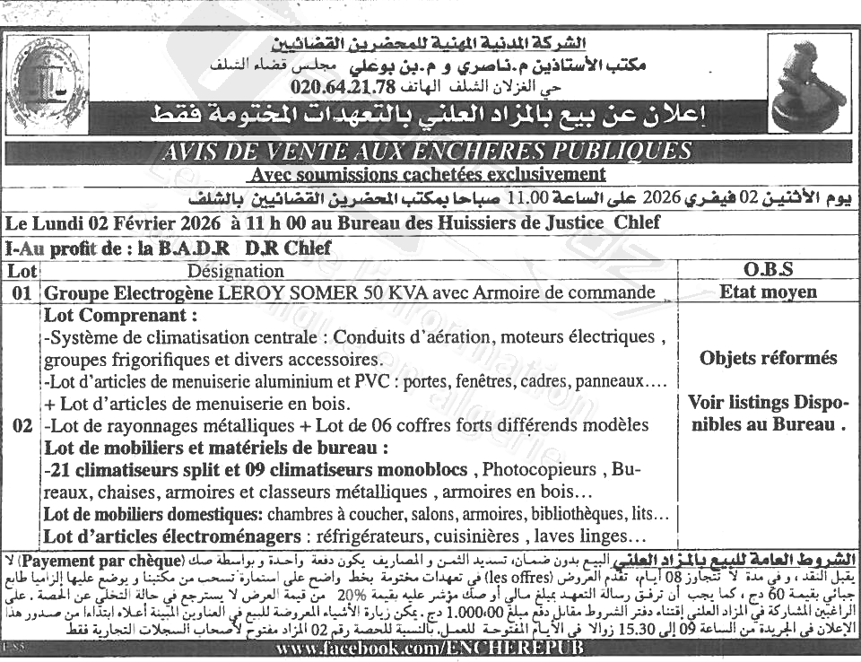 Il sera procédé à la vente au plus offrant et dernier enchérisseur le :