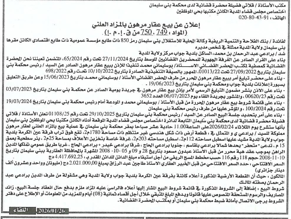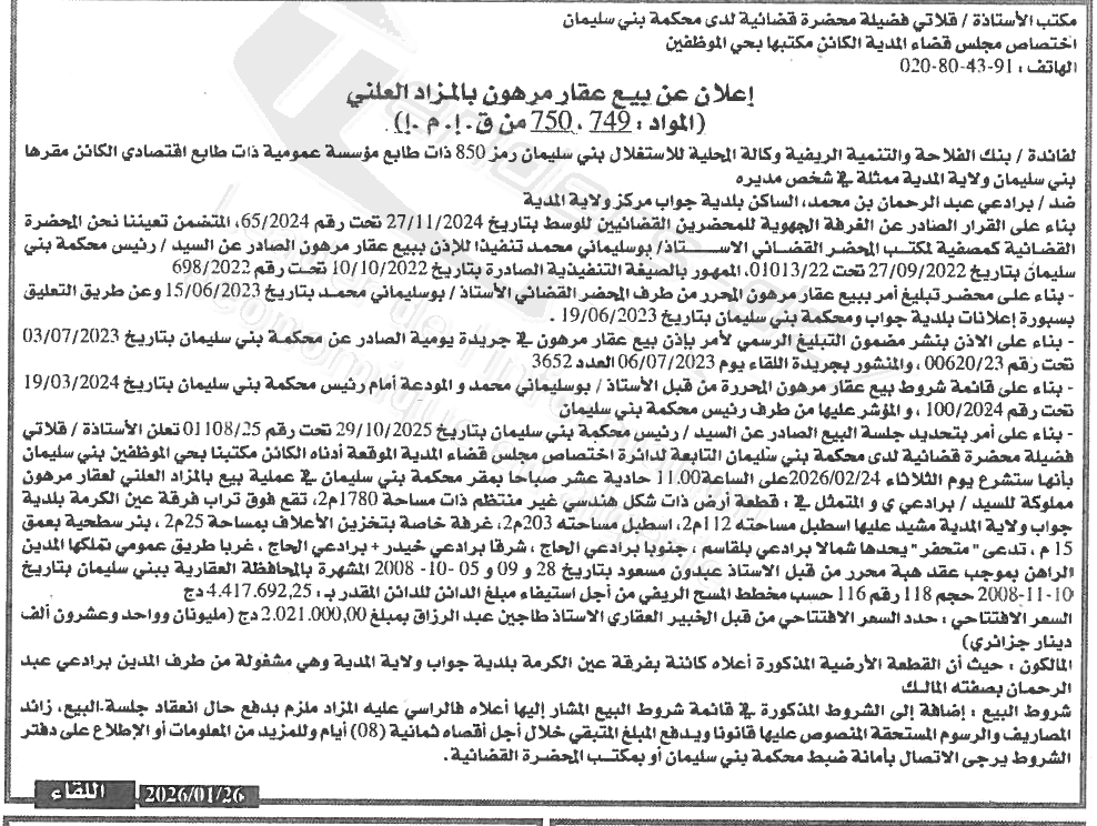 Il sera procédé à la vente au plus offrant et dernier enchérisseur le :