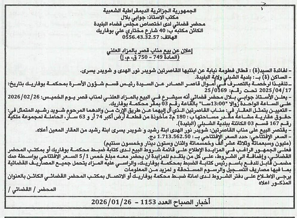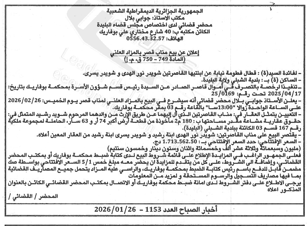 | Paru dans le journal : اخبار الصباح | |