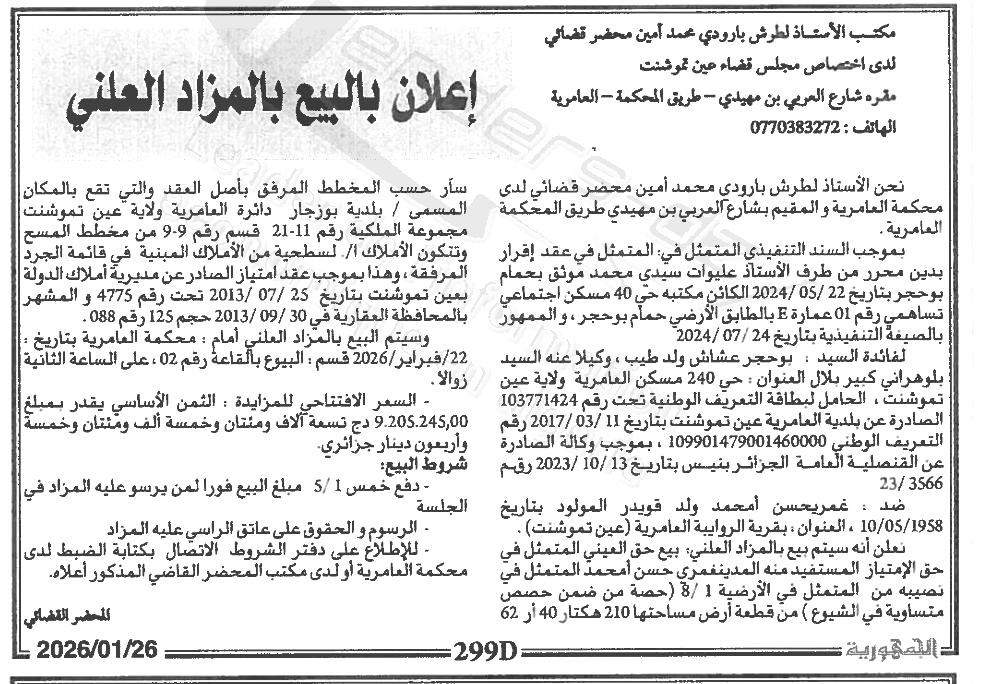 Il sera procédé à la vente au plus offrant et dernier enchérisseur le :