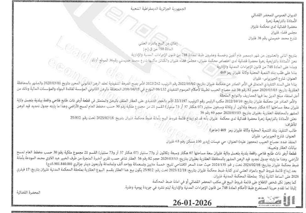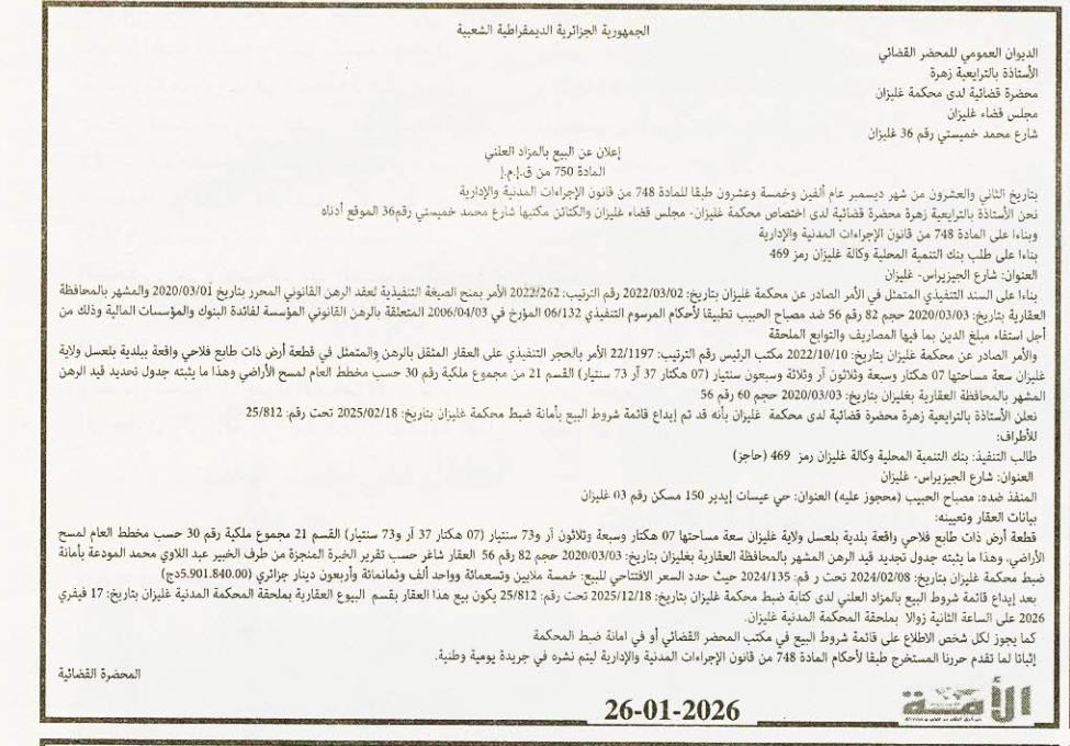 Il sera procédé à la vente au plus offrant et dernier enchérisseur le : 17/02/2026';