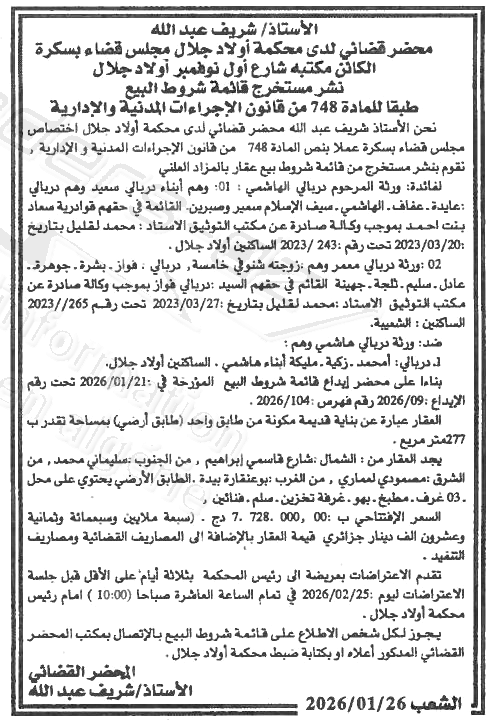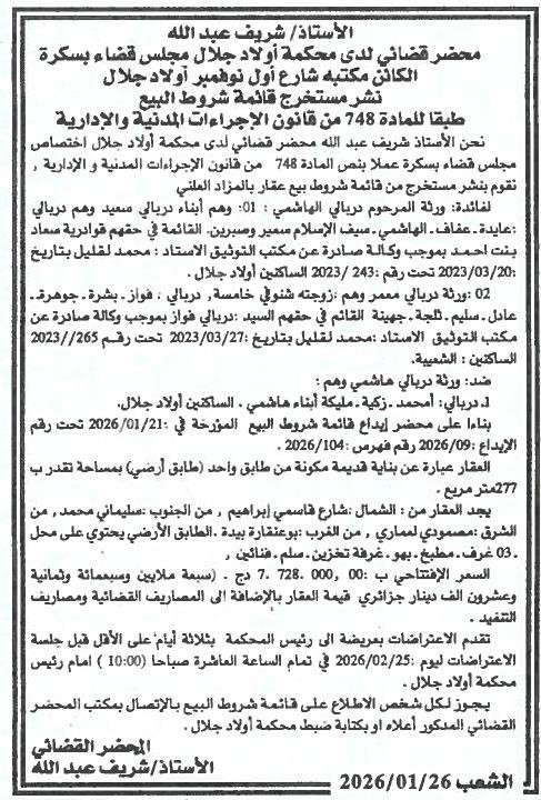 Il sera procédé à la vente au plus offrant et dernier enchérisseur le :