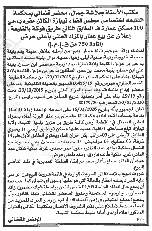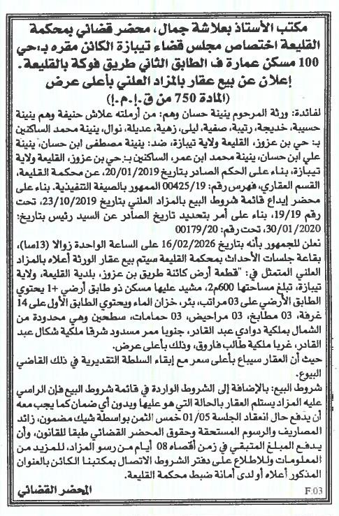 Il sera procédé à la vente au plus offrant et dernier enchérisseur le :
