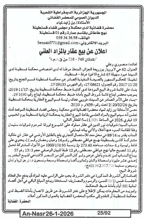 | Paru dans le journal : النصر | |