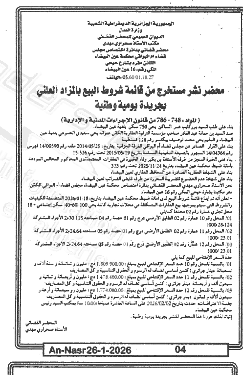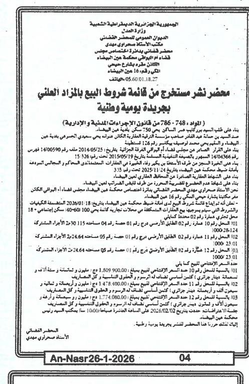 Il sera procédé à la vente au plus offrant et dernier enchérisseur le :
