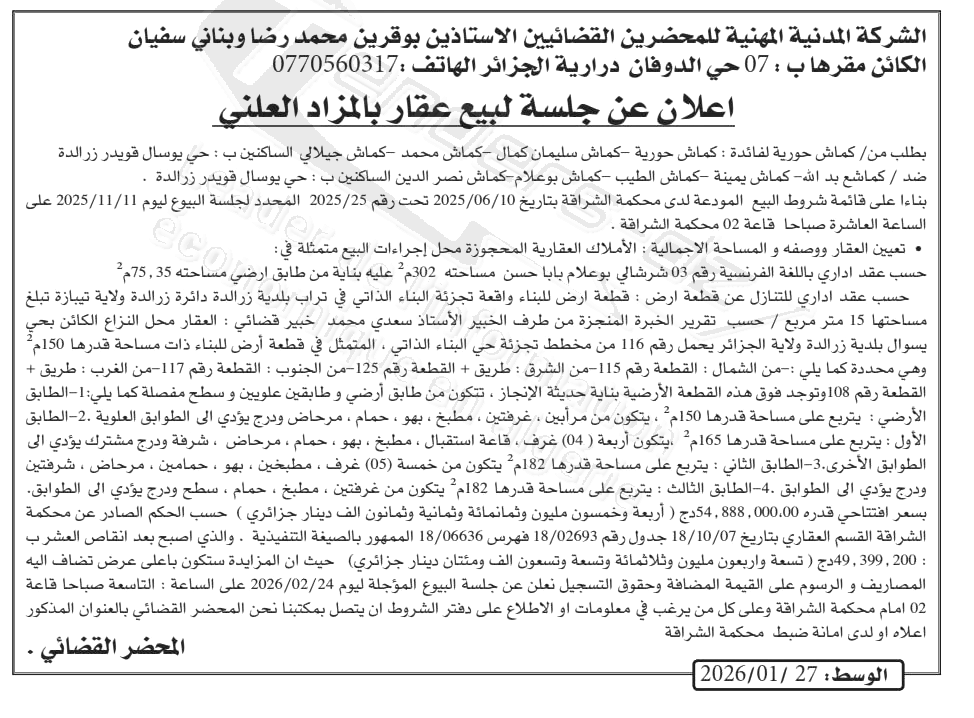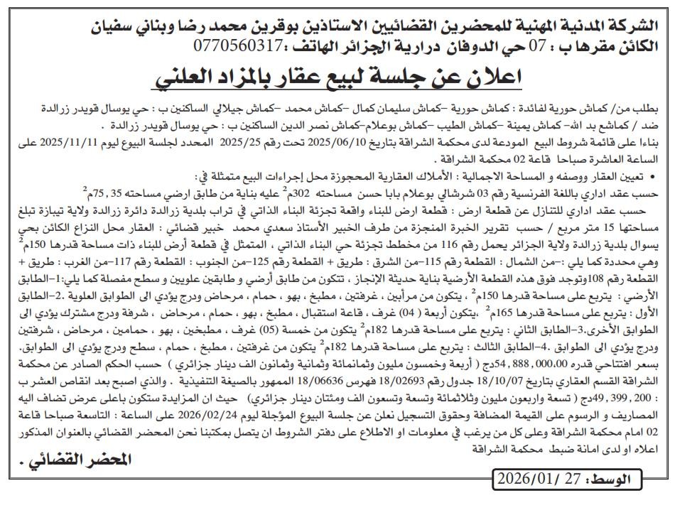 Il sera procédé à la vente au plus offrant et dernier enchérisseur le :