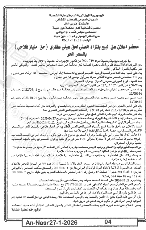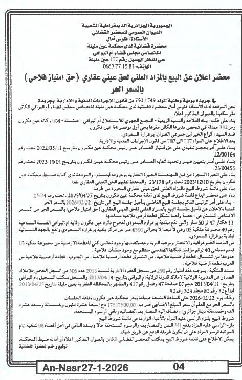 Paru dans le journal : النصر