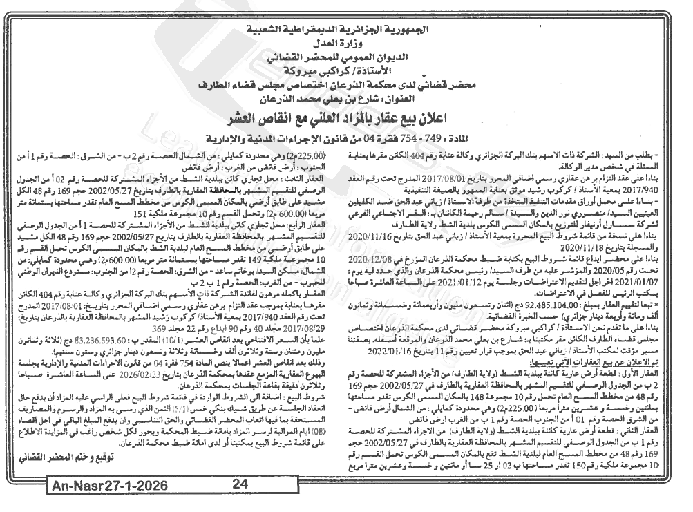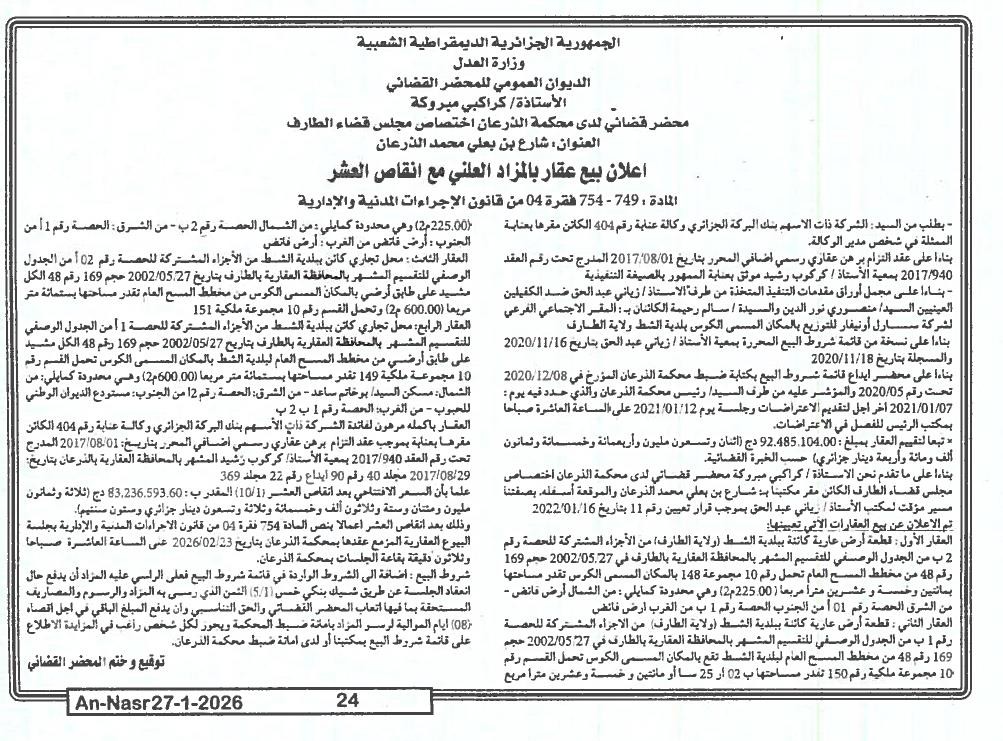 | Paru dans le journal : النصر | |
