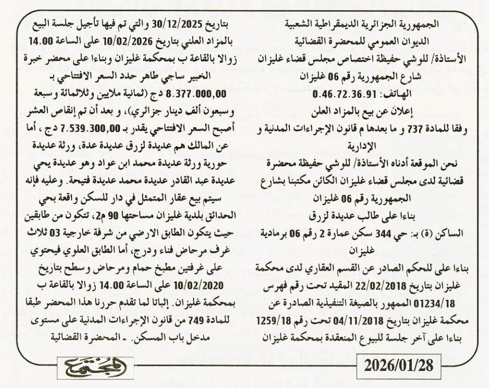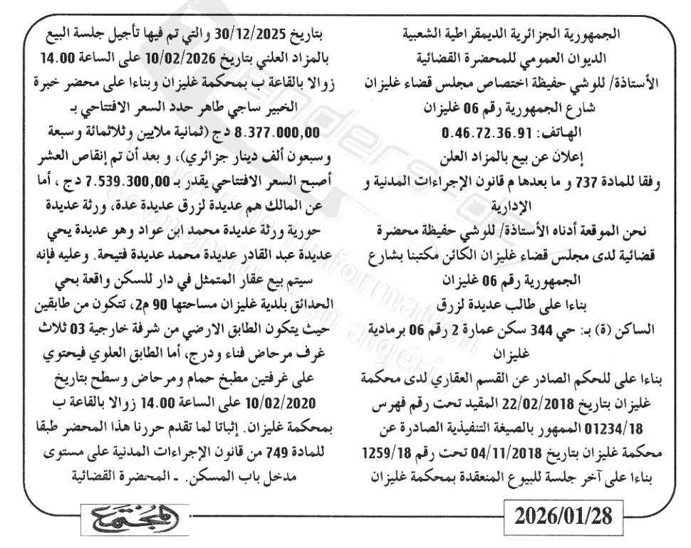Il sera procédé à la vente au plus offrant et dernier enchérisseur le :