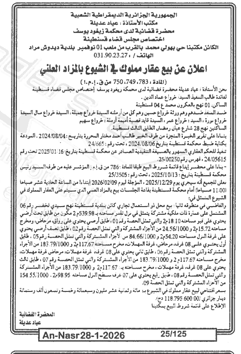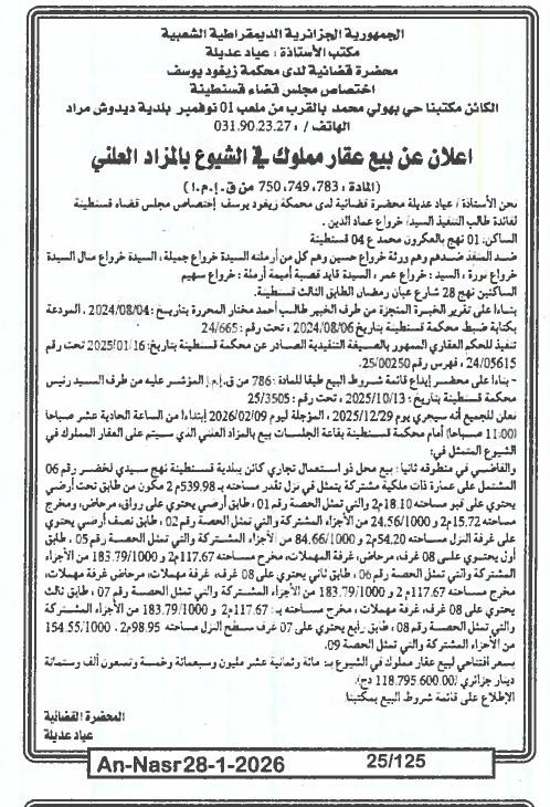 Il sera procédé à la vente au plus offrant et dernier enchérisseur le :