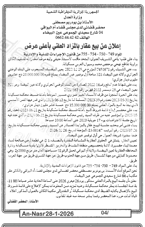 | Paru dans le journal : النصر | |