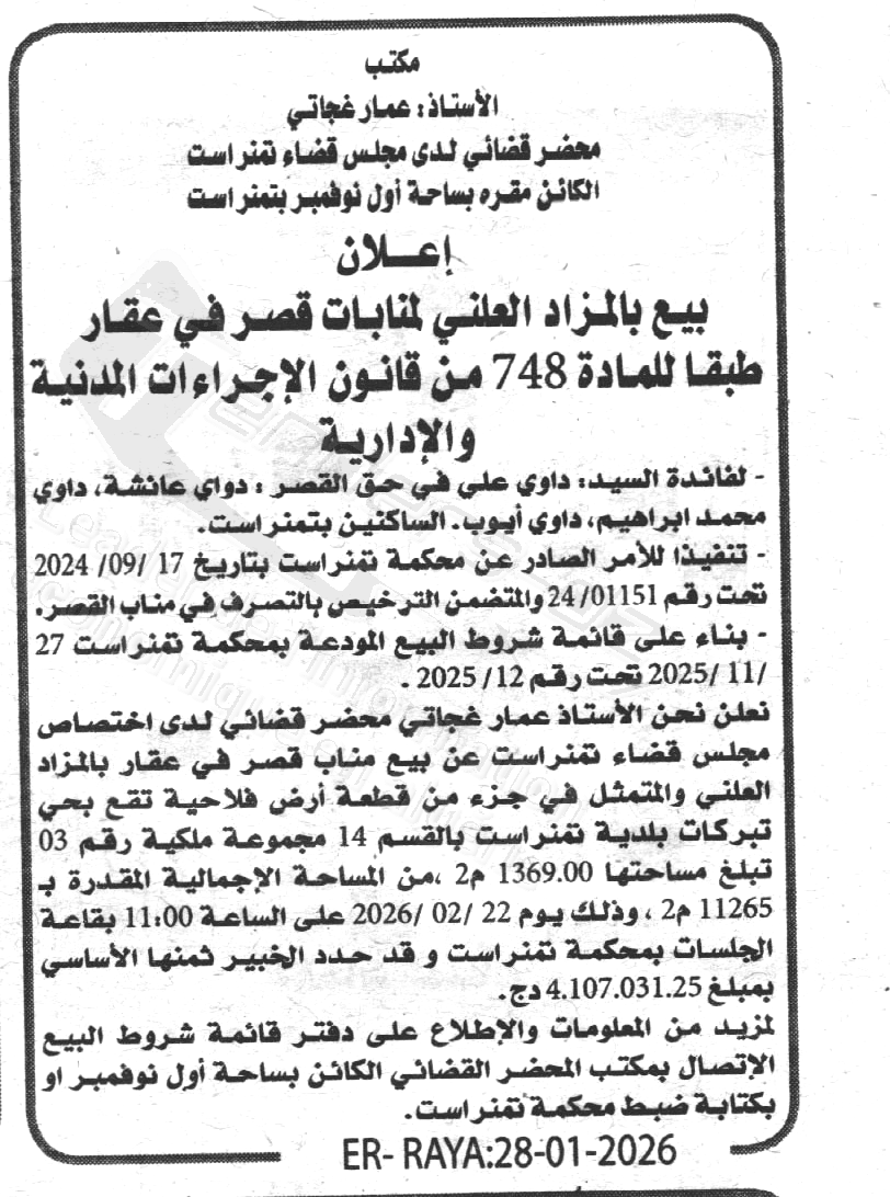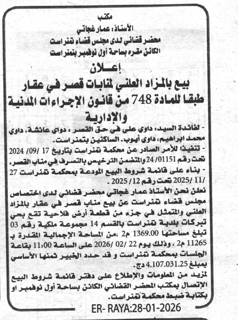 Il sera procédé à la vente au plus offrant et dernier enchérisseur le :