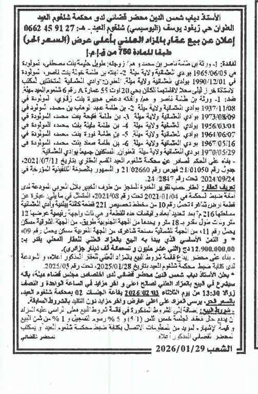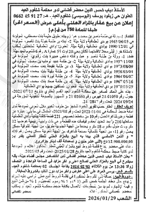 Il sera procédé à la vente au plus offrant et dernier enchérisseur le : 05/02/2026';