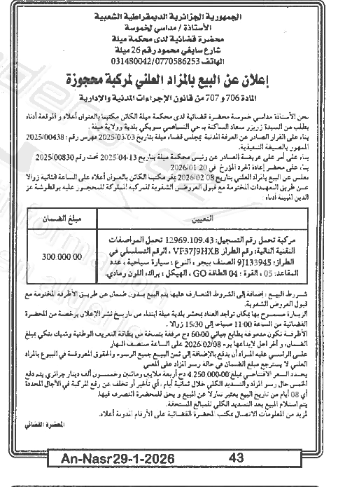Il sera procédé à la vente au plus offrant et dernier enchérisseur le :