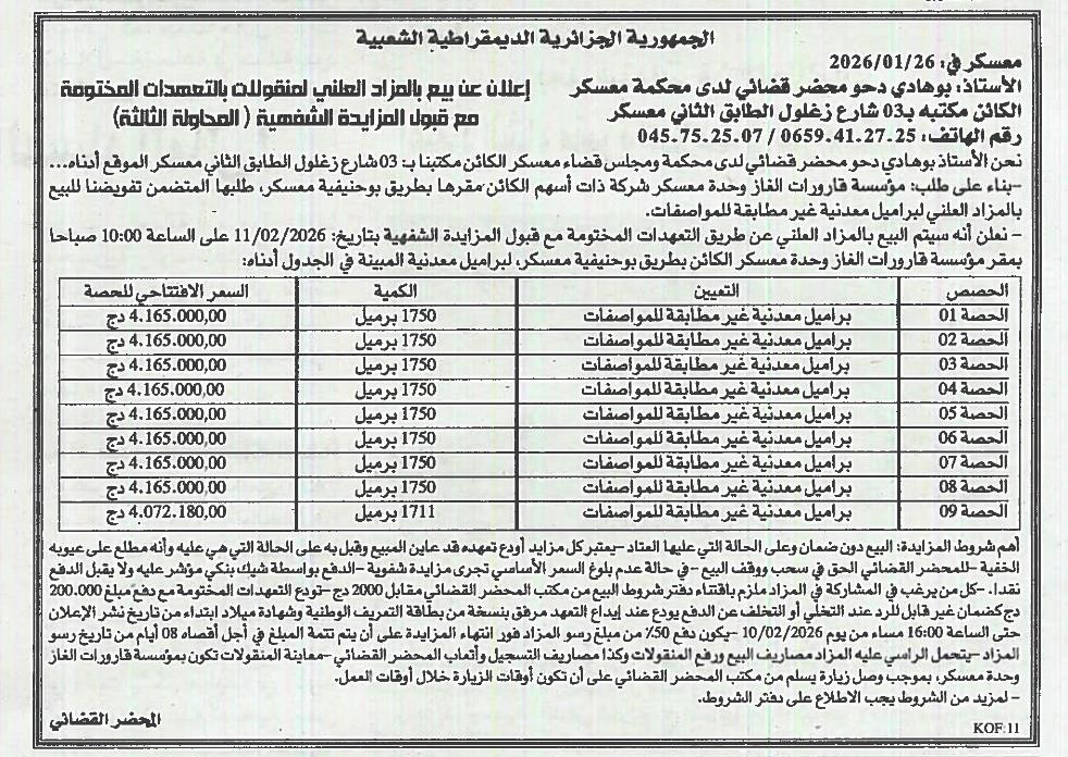 Il sera procédé à la vente au plus offrant et dernier enchérisseur le :