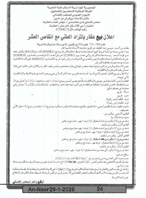 | Paru dans le journal : النصر | |