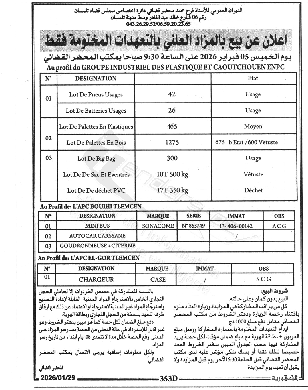 Il sera procédé à la vente au plus offrant et dernier enchérisseur le :