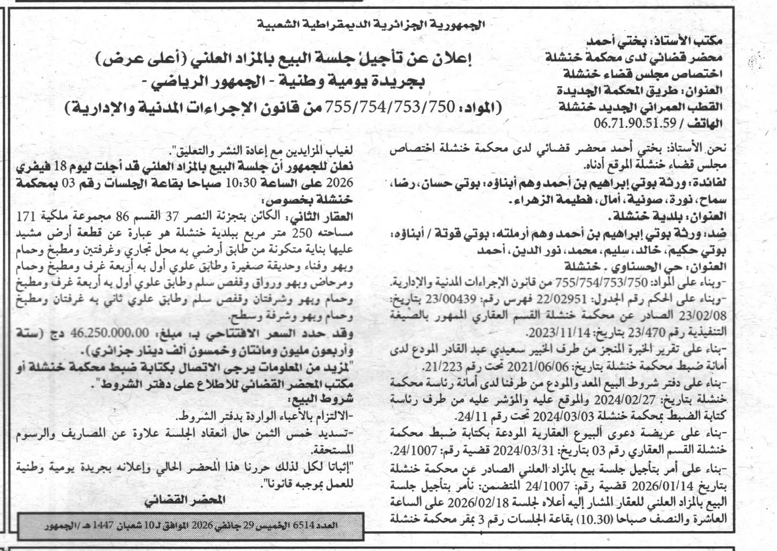 | Objet: Vente des biens immobiliers | |