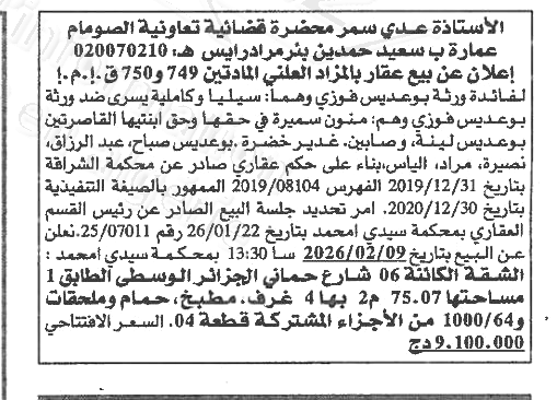 Il sera procédé à la vente au plus offrant et dernier enchérisseur le :
