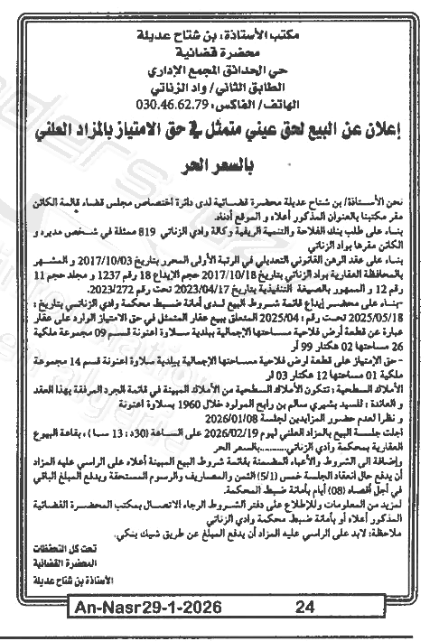 Il sera procédé à la vente au plus offrant et dernier enchérisseur le :