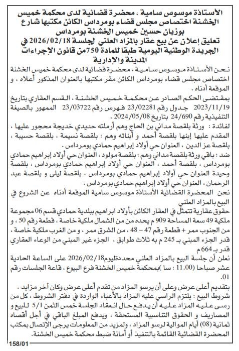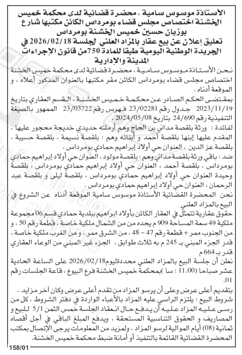 Il sera procédé à la vente au plus offrant et dernier enchérisseur le :