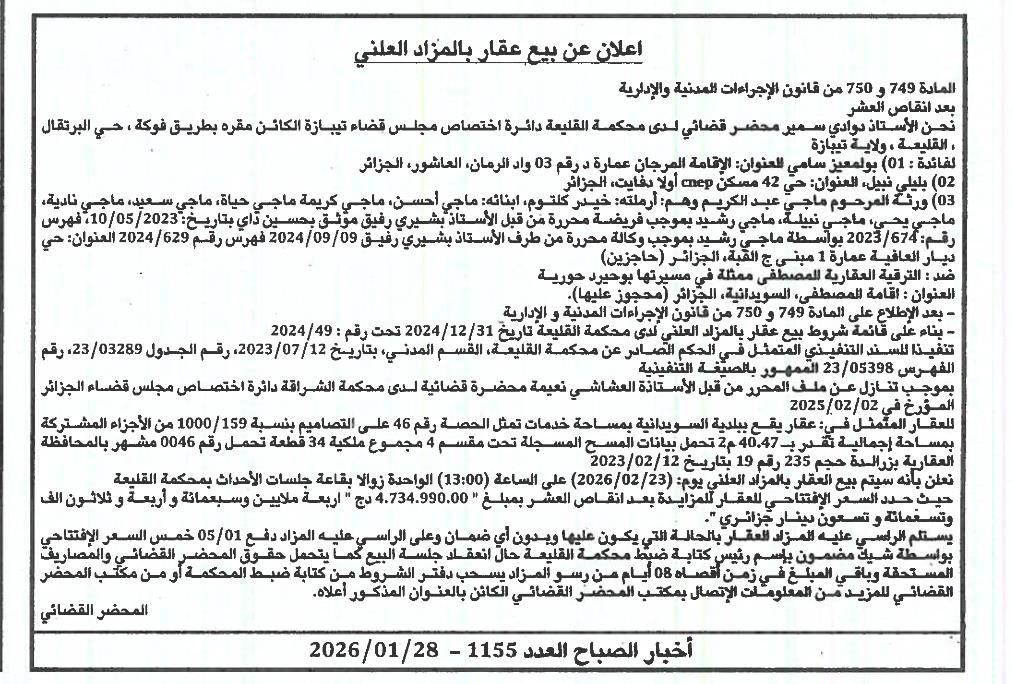 | Paru dans le journal : اخبار الصباح | |