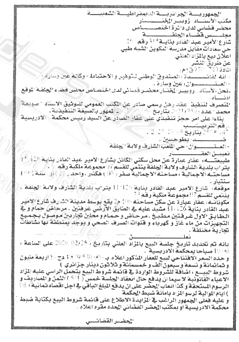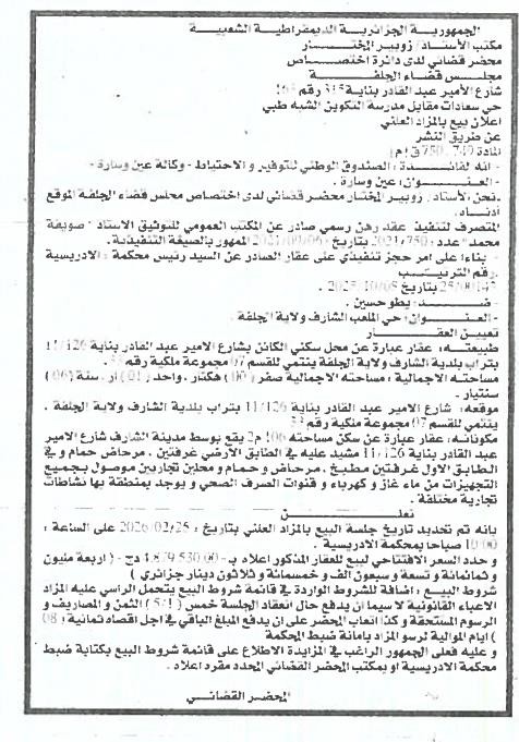 Il sera procédé à la vente au plus offrant et dernier enchérisseur le :