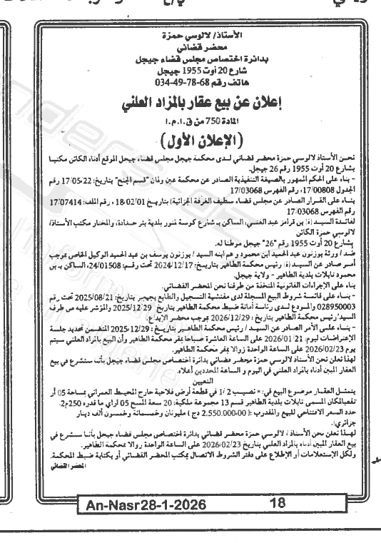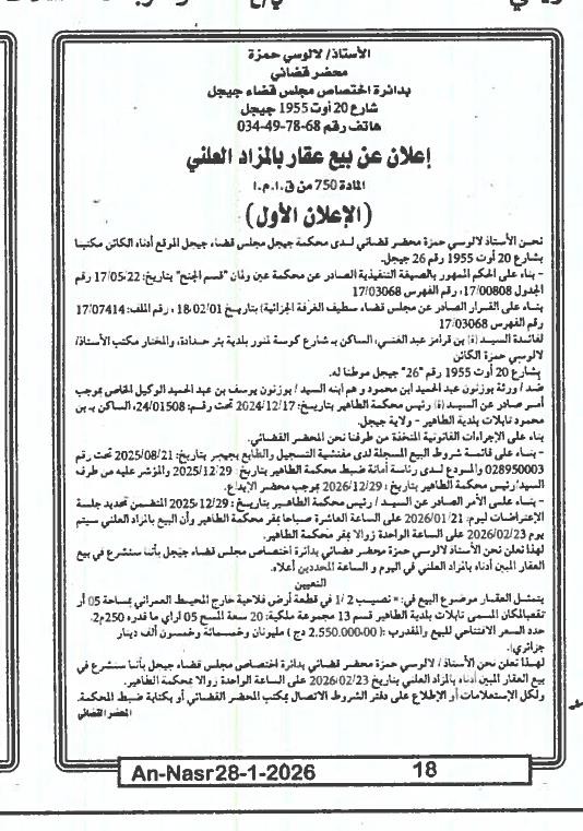 | Paru dans le journal : النصر | |