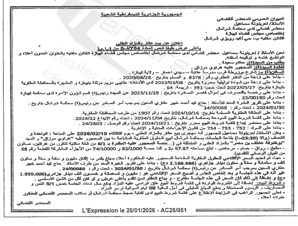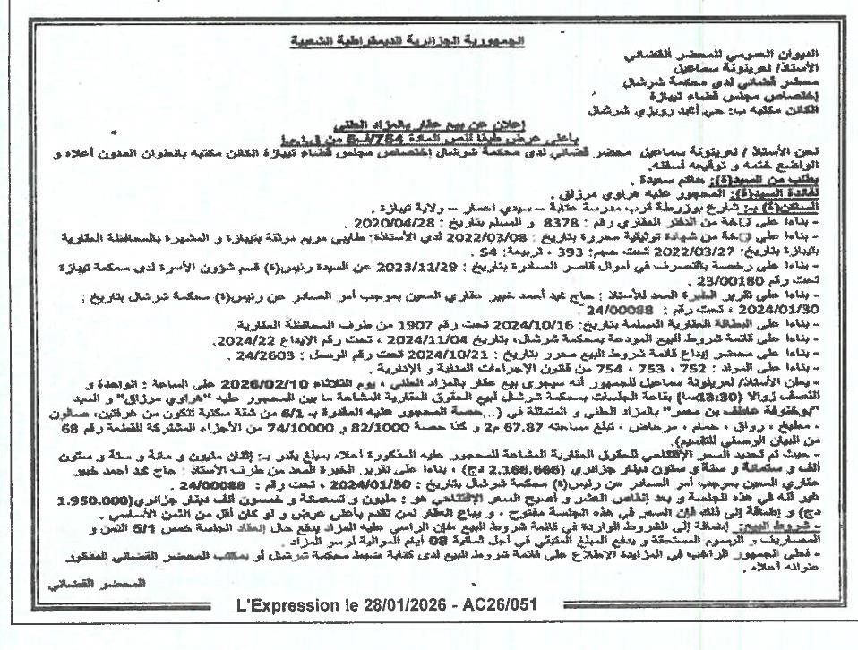 Il sera procédé à la vente au plus offrant et dernier enchérisseur le :