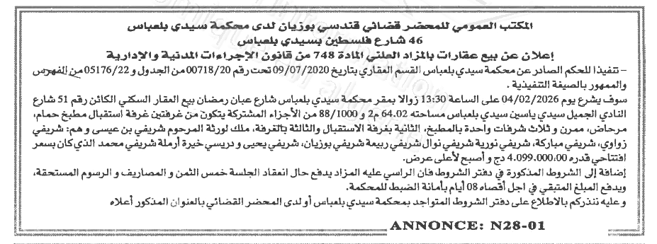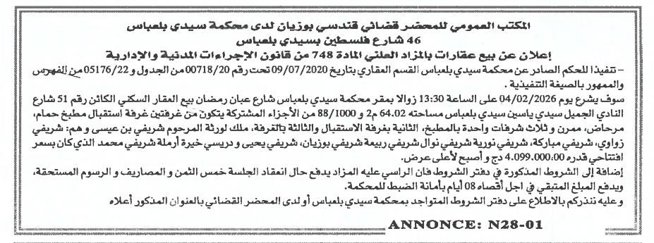 Il sera procédé à la vente au plus offrant et dernier enchérisseur le :