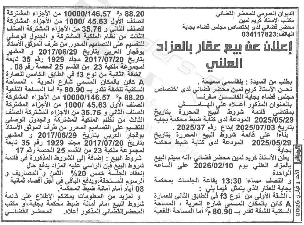 Il sera procédé à la vente au plus offrant et dernier enchérisseur le :
