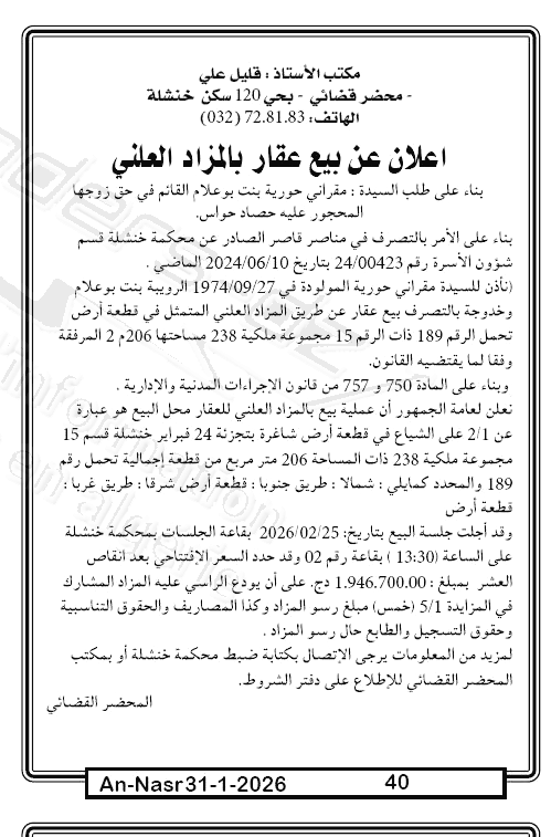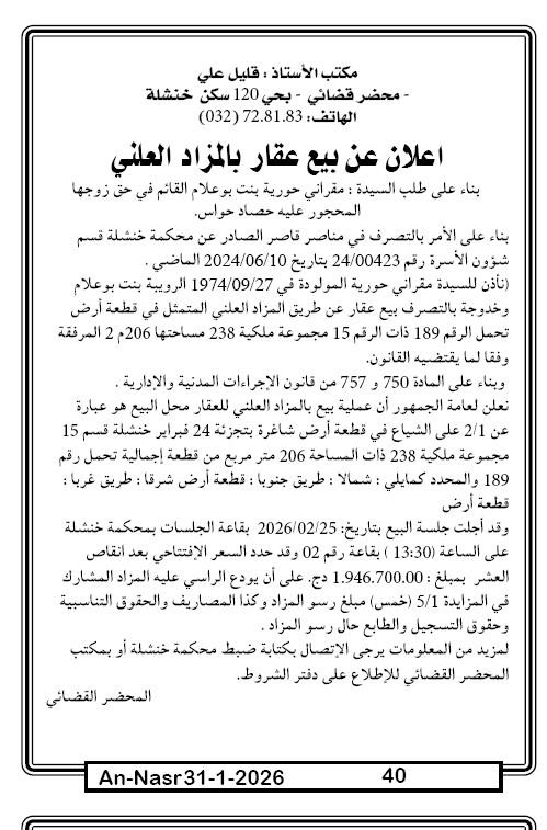 | Paru dans le journal : النصر | |