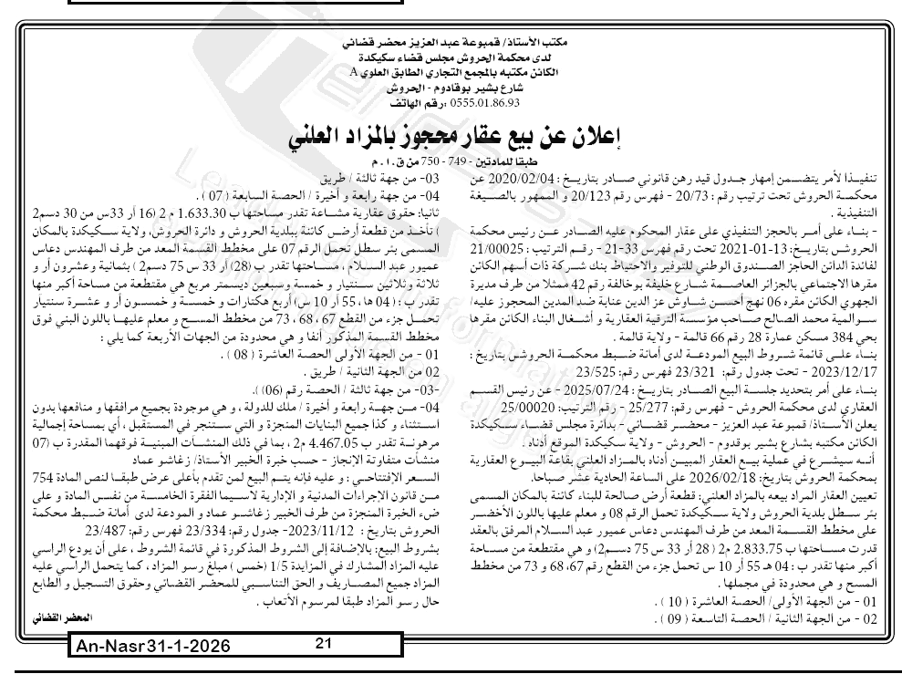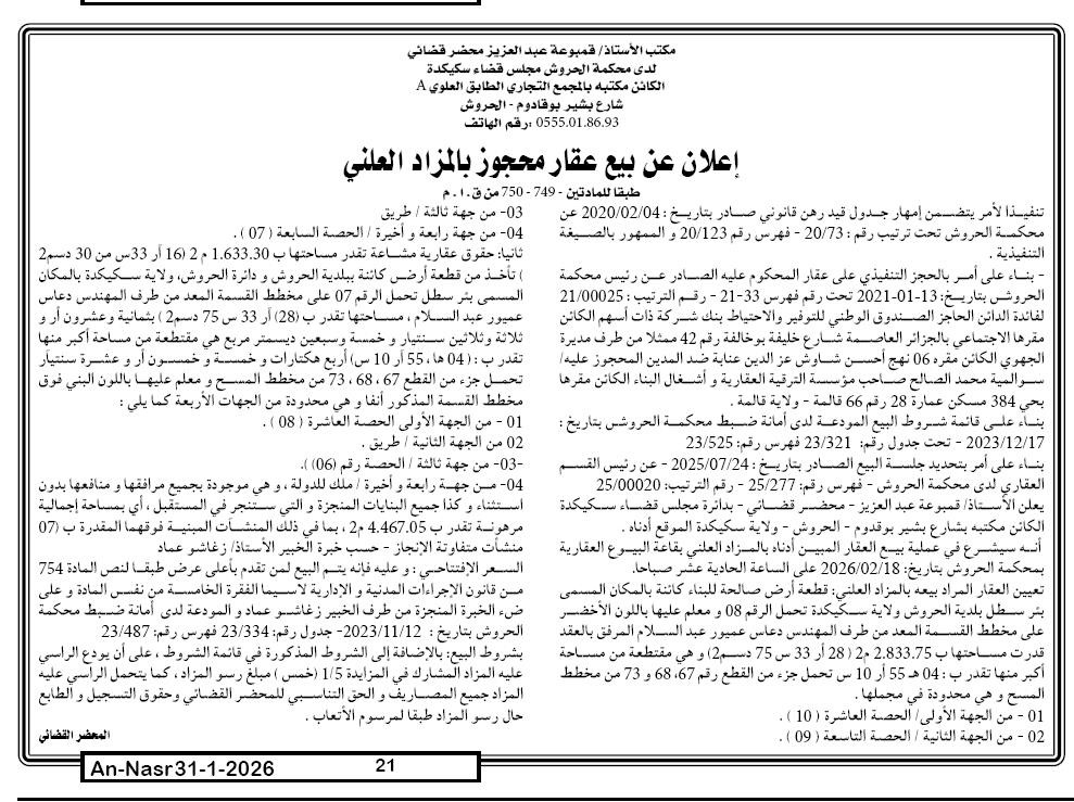 | Paru dans le journal : النصر | |
