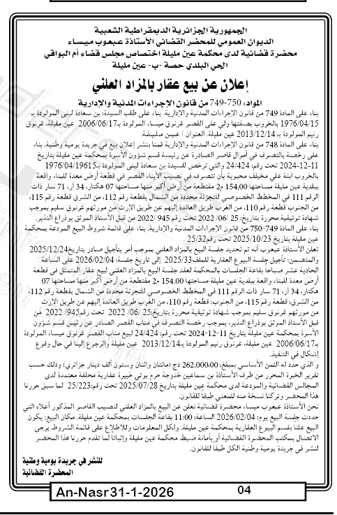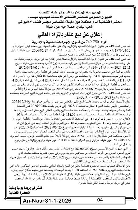 | Paru dans le journal : النصر | |