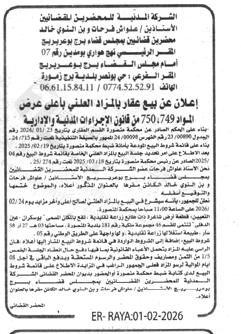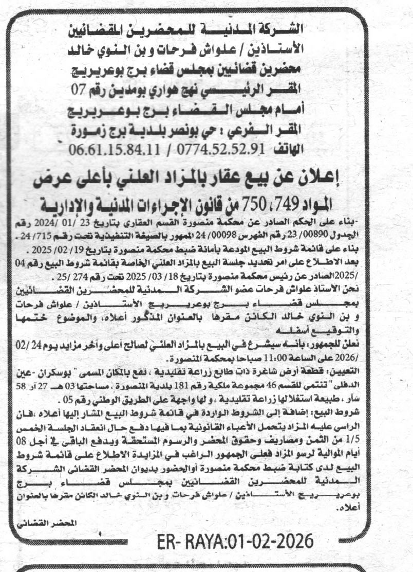 Il sera procédé à la vente au plus offrant et dernier enchérisseur le :