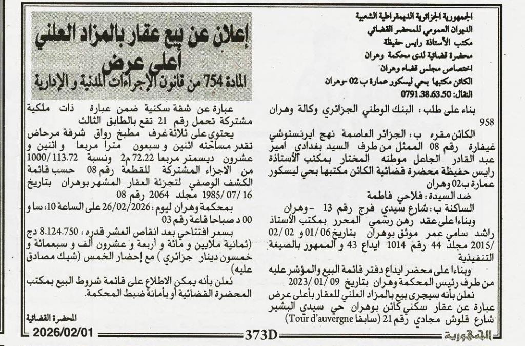 | Objet: Vente d'un immobiliers | |